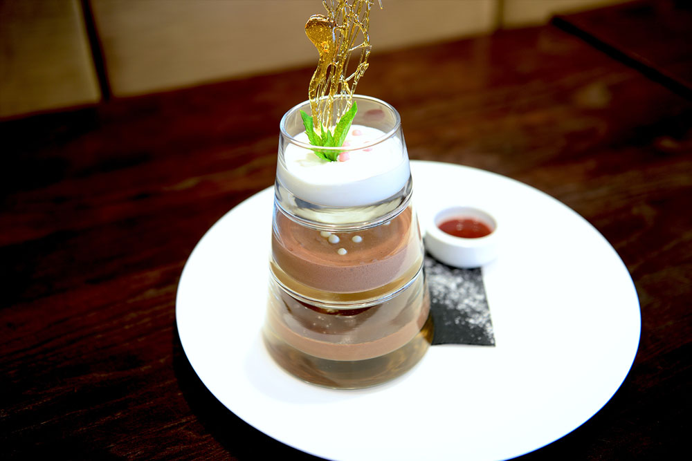 £6.95A trio of Baileys and caramel pannacotta, chocolate ice cream in a chocolate cup and Bellini cheesecake with limoncello.