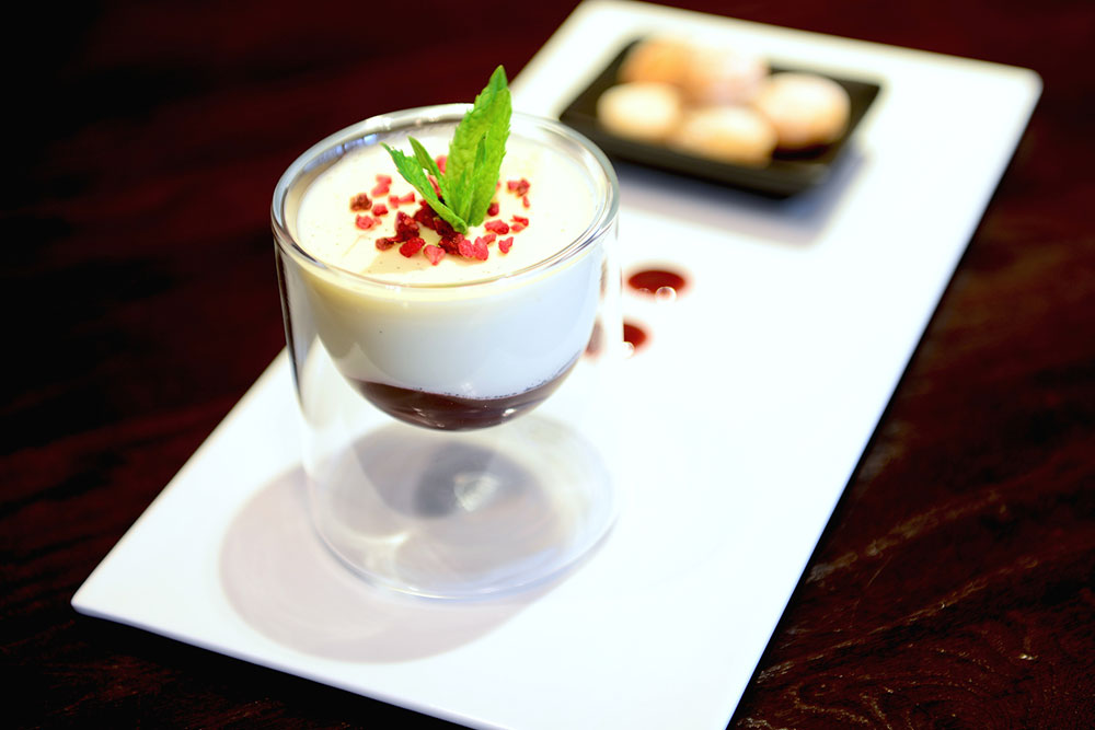£6.95A smooth and creamy fresh vanilla panacotta served with raspberry coulis and mini sugar dusted doughnuts.