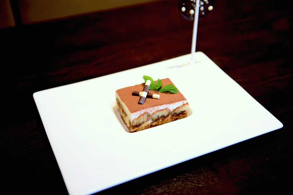 £6.95Layers of sponge soaked with liqueur and coffee, filled with mascarpone and coffee cream, dusted with a rich cocoa powder.