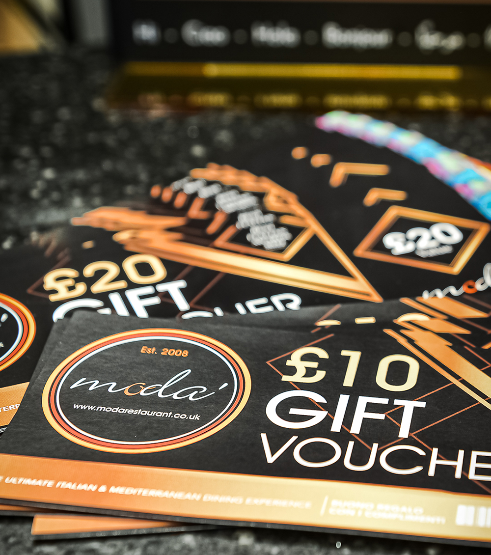 If you are looking for that special gift, why not give someone special a meal to remember with a Gift Voucher from Moda? Our gift vouchers are perfect for birthdays, anniversaries, or any special occasion, allowing your loved ones to enjoy a delightful dining experience.