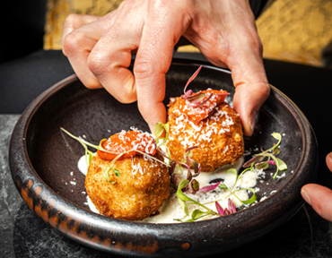 Highlights include our indulgent Truffle Mushroom Arancini, the exquisite 10oz Fillet Steak cooked to your liking, and the Dolce Abbraccio Fondente—a decadent sharing dessert of warm chocolate fondue with fresh fruits, marshmallows, macarons, and amaretti biscuits.